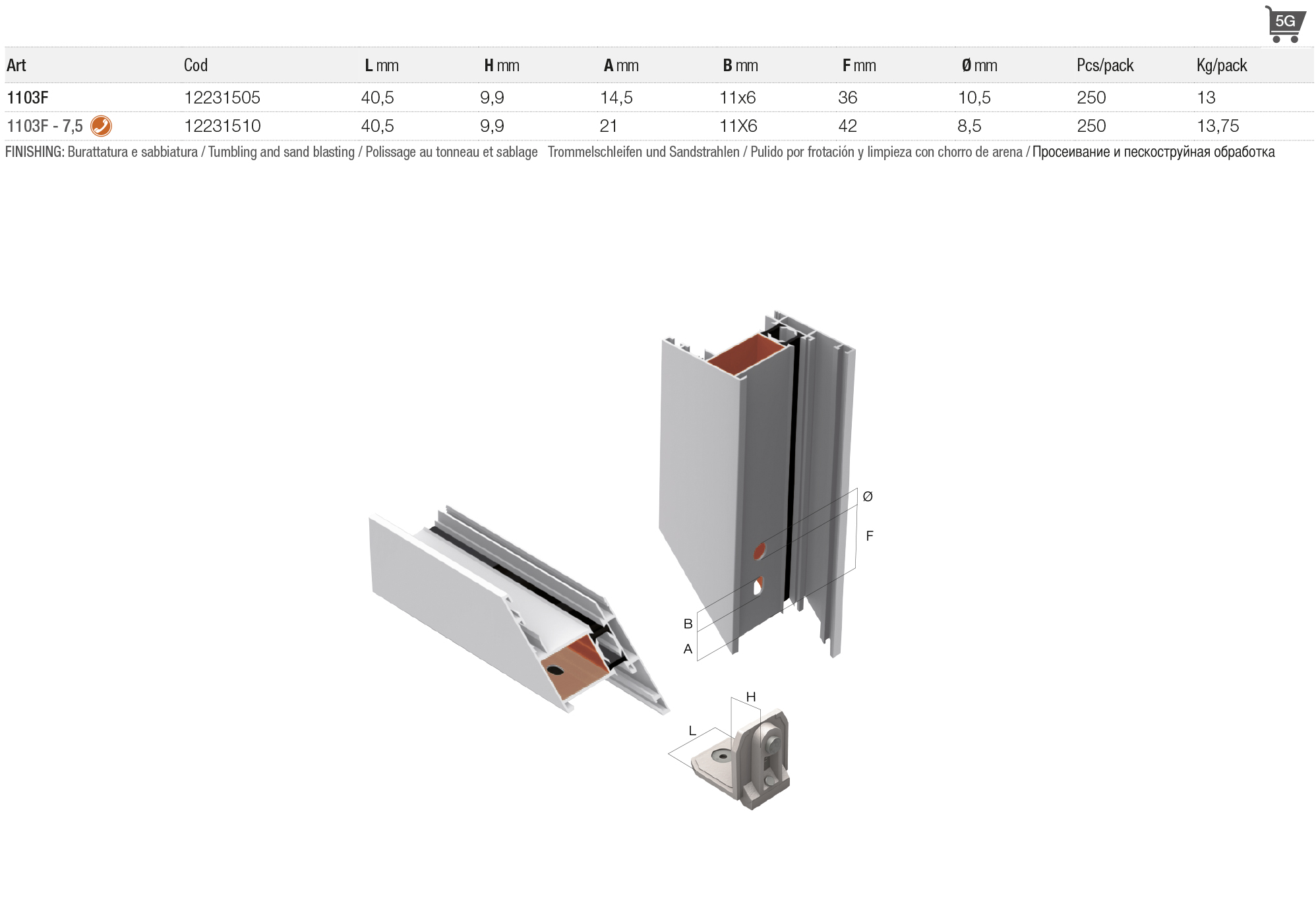 > èquerre en aluminium avec bouton intèrieur
