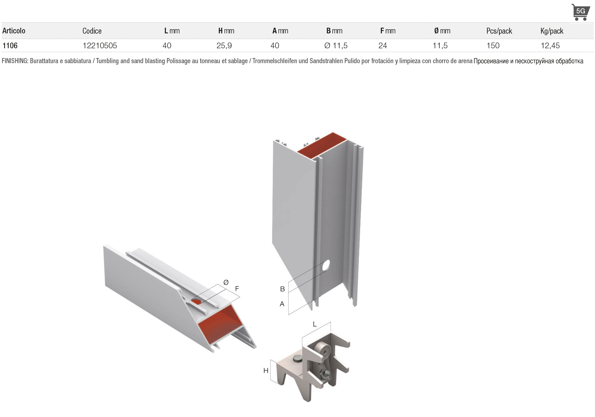 > èquerre en aluminium avec bouton intèrieur