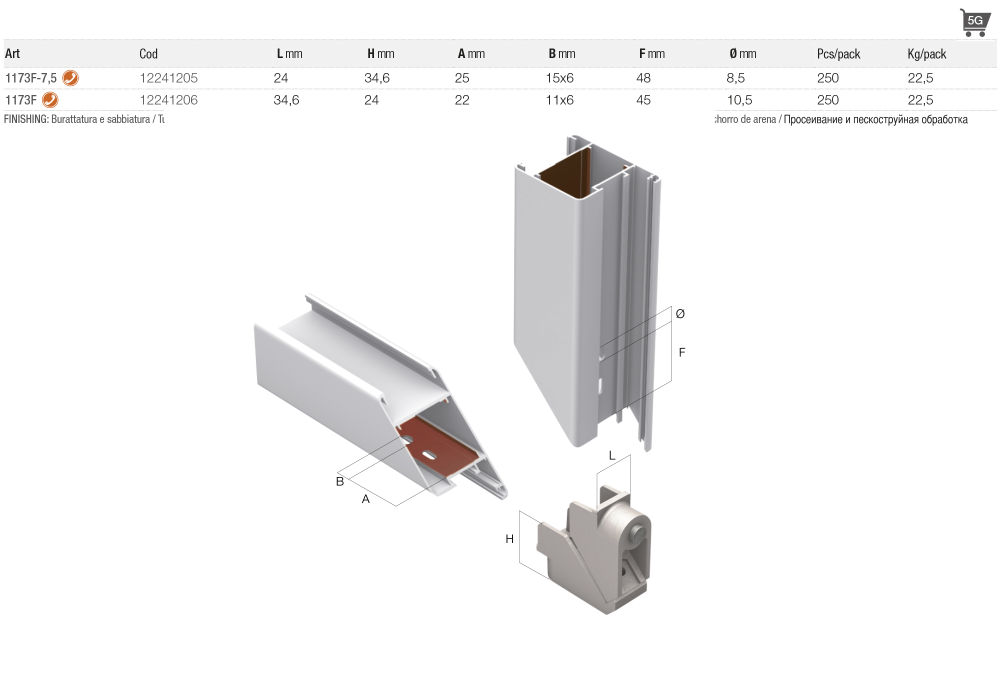 > èquerre en aluminium avec bouton intèrieur