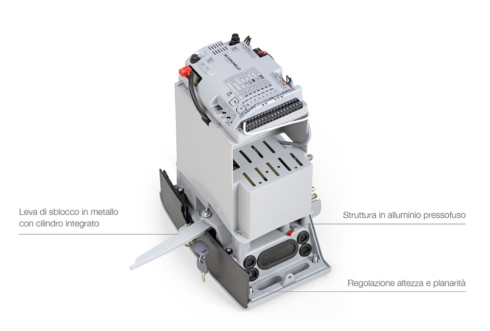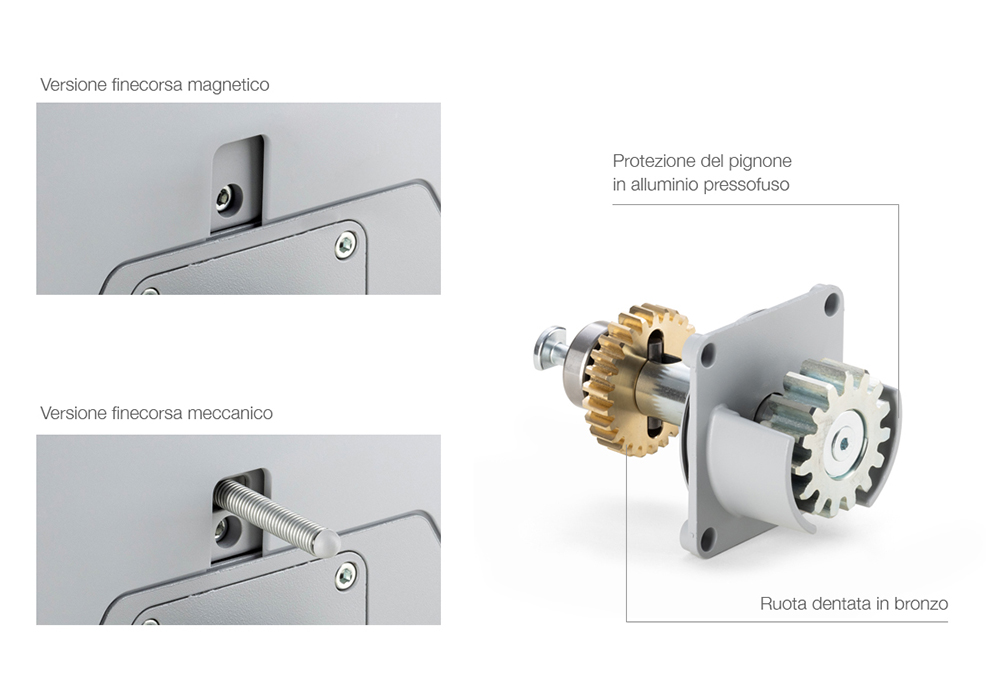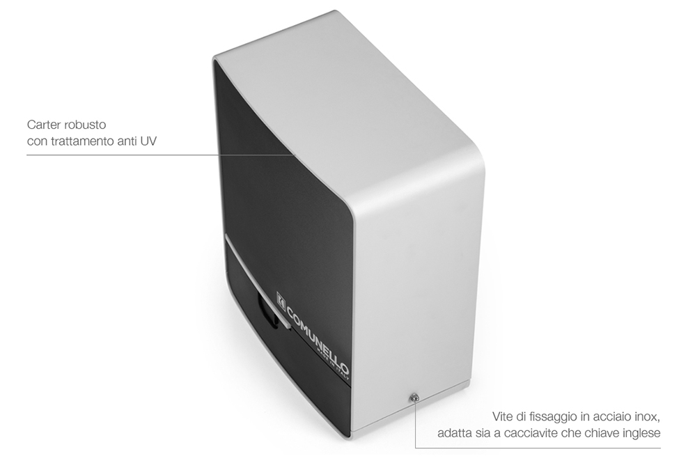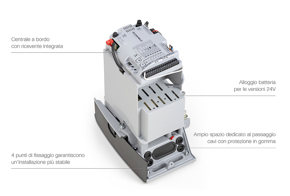 La ricevente è inclusa nella centrale. I cuscinetti di supporto motore garantiscono la silenziosità anche a pieno carico.