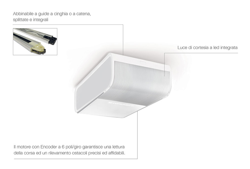 Partenza graduale e rallentamento in apertura e chiusura. Ingranaggi in metallo resistenti e silenziosi.