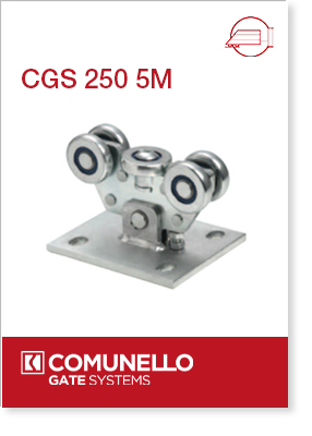 • La distribuzione del carico su tutte le ruote è garantito dal perno centrale che ruotando permette al gruppo ruote di adattarsi al movimento del cancello