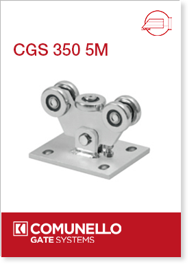 • La distribuzione del carico su tutte le ruote è garantito perno centrale che ruotando permette al gruppo ruote di adattarsi durante al movimento del cancello
