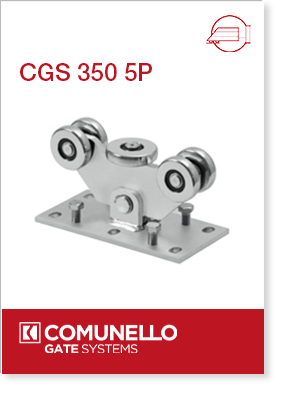 • La distribuzione del carico su tutte le ruote è garantito perno centrale che ruotando permette al gruppo ruote di adattarsi al movimento del cancello