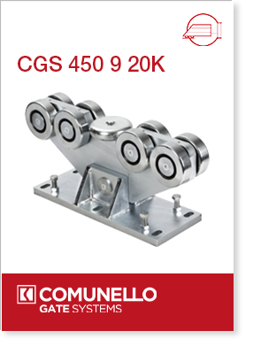 • La distribuzione del carico sulle ruote è garantito dal perno centrale che ruotando permette al gruppo ruote di adattarsi al movimento del cancello