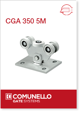 • La distribuzione del carico su tutte le ruote è garantito perno centrale che ruotando permette al gruppo ruote di adattarsi al movimento del cancello
