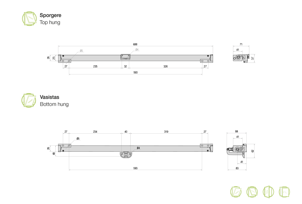 L’involucro in alluminio estruso garantisce un’elevata resistenza anche in ambienti particolarmente difficili; l’attuatore nella versione 24V ha superato i test di resistenza al calore previsti dalla normativa EN12101-2