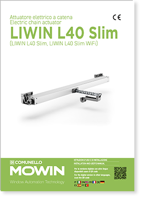 La nuova tecnologia Wi-Fi, oltre a dare la possibilità di effettuare reogolazioni molto precise mediante Mowin App consente la sincronizzazione fino a 8 LIWIN L40 Slim per un’eventuale installazione di più attuatori in un’unica finestra o su sistemi in cui è necessaria una forza elevata.